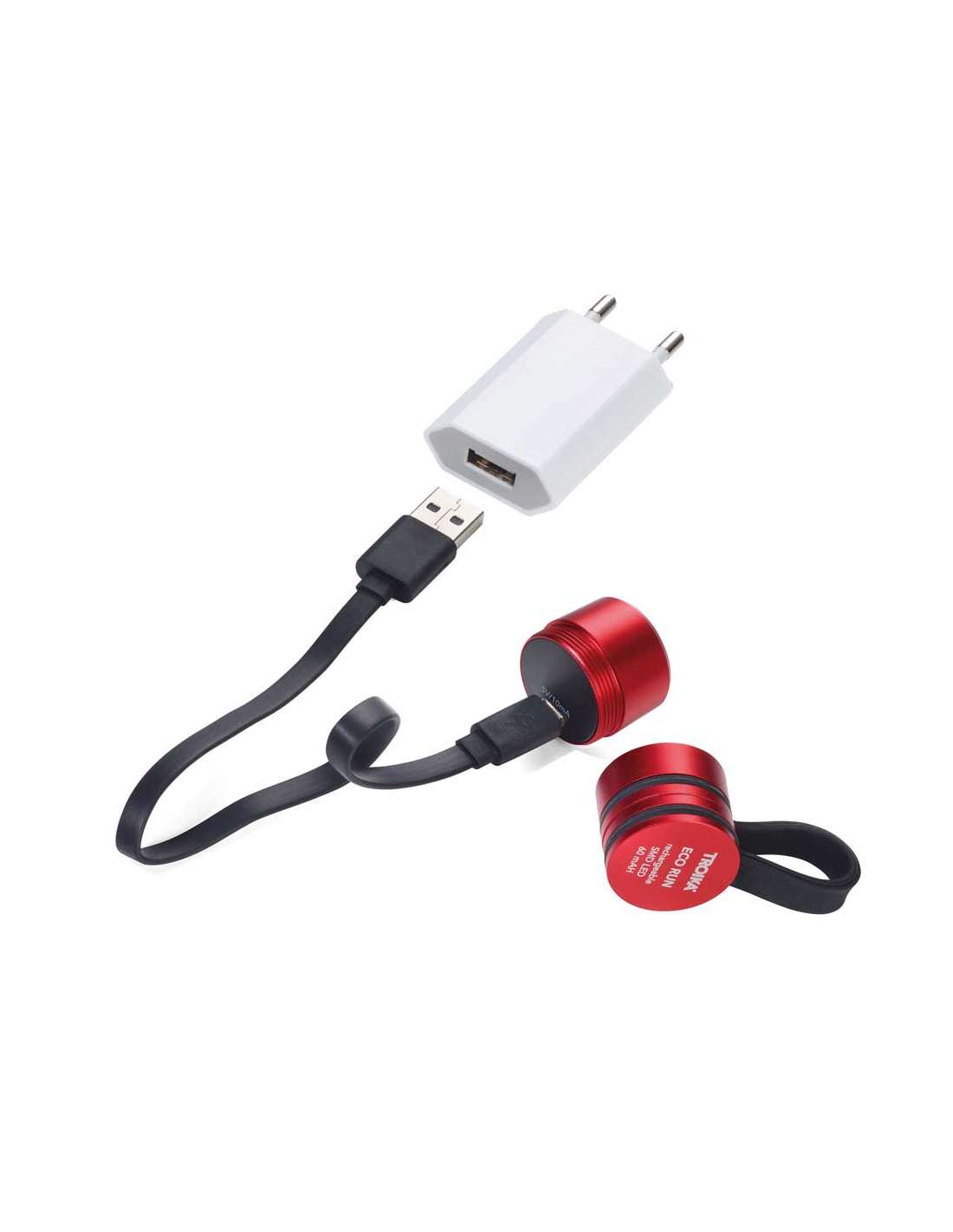 TROIKA ECO RUN Lampe de poche avec lumière LED, 3 fonctions d'éclairage, incl. câble de charge, rouge