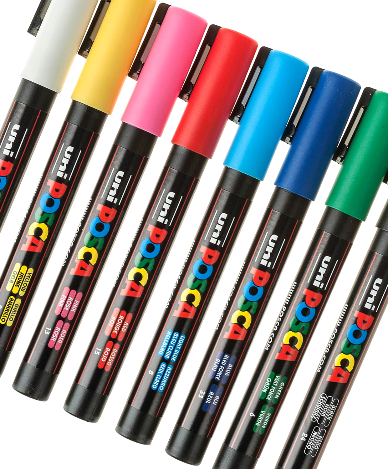 Le marqueur peinture probablement le plus connu sur le marché laisse libre cours à la créativité des esprits. Outils incontournables pour les artistes, les architectes, les créatifs en tout genre, le Posca s'utilise sur tous les supports : plastique, bois, carton, papier, verre, textile…