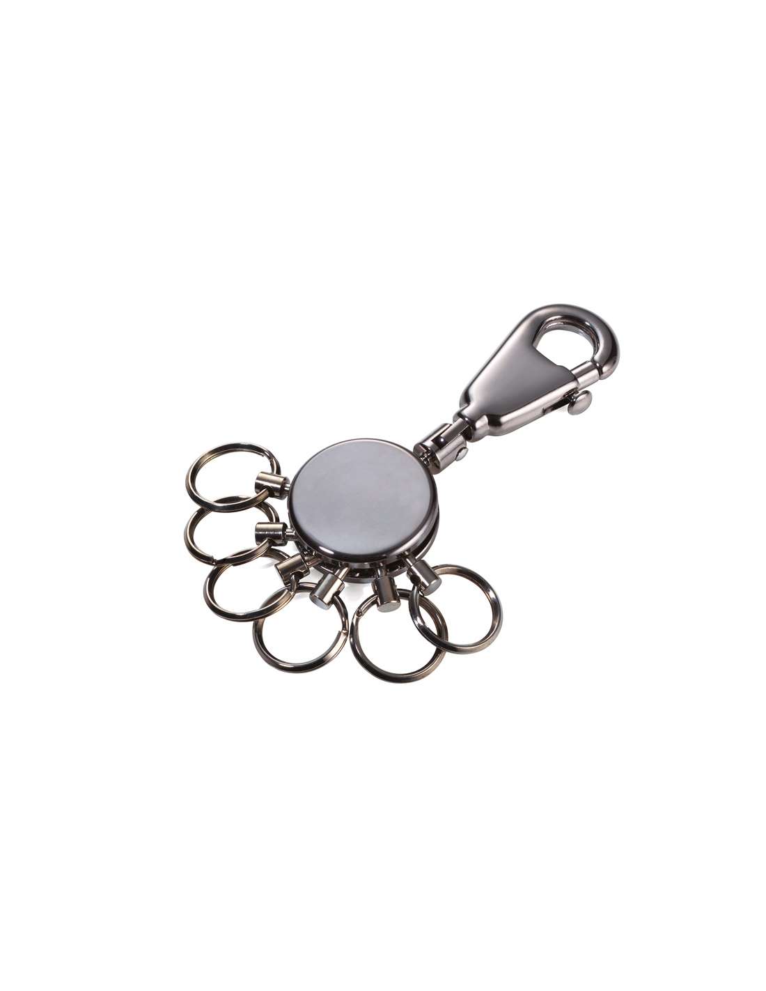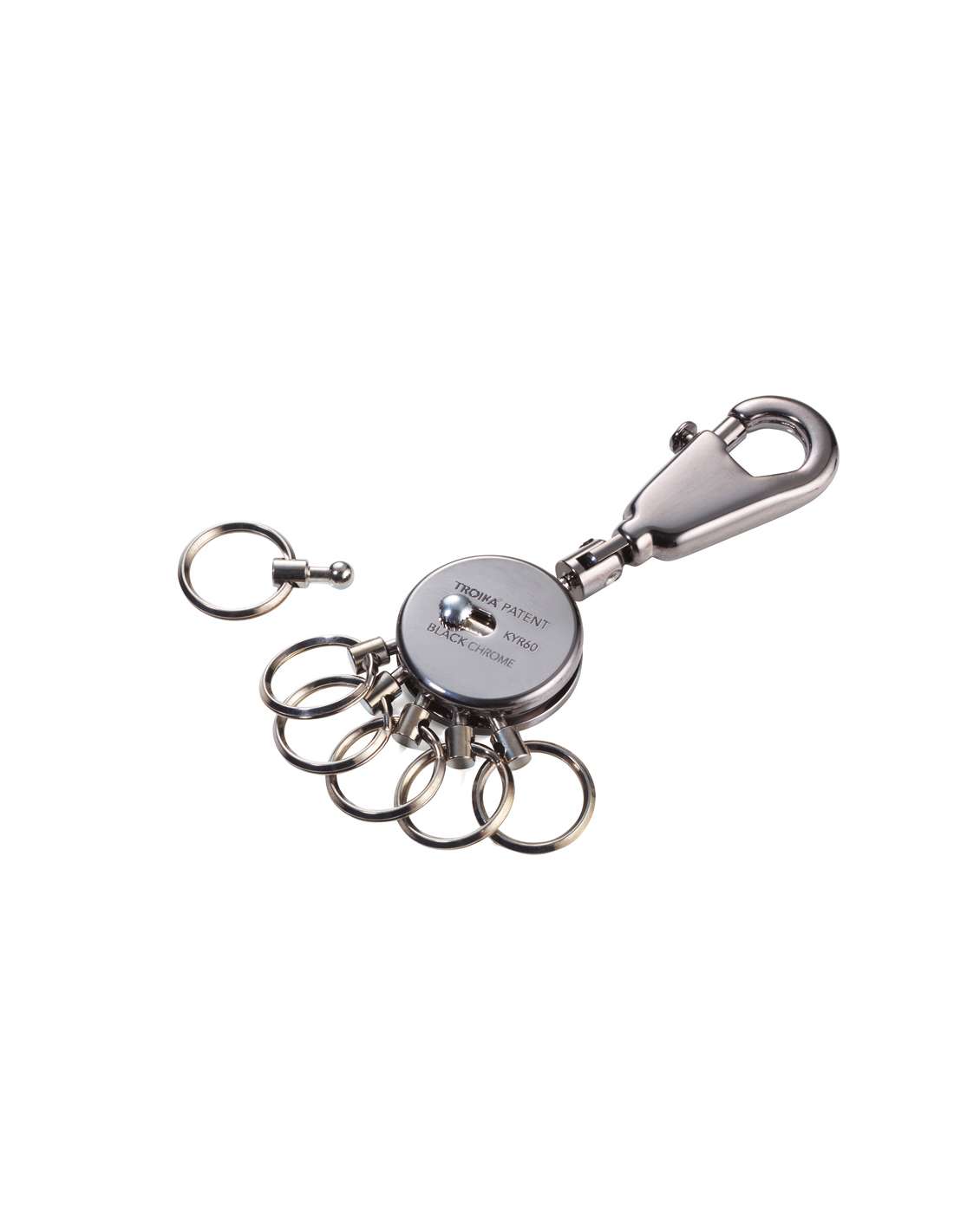 TROIKA PATENT Porte-clés rond avec 6 annneaux amovibles, noir chrome
