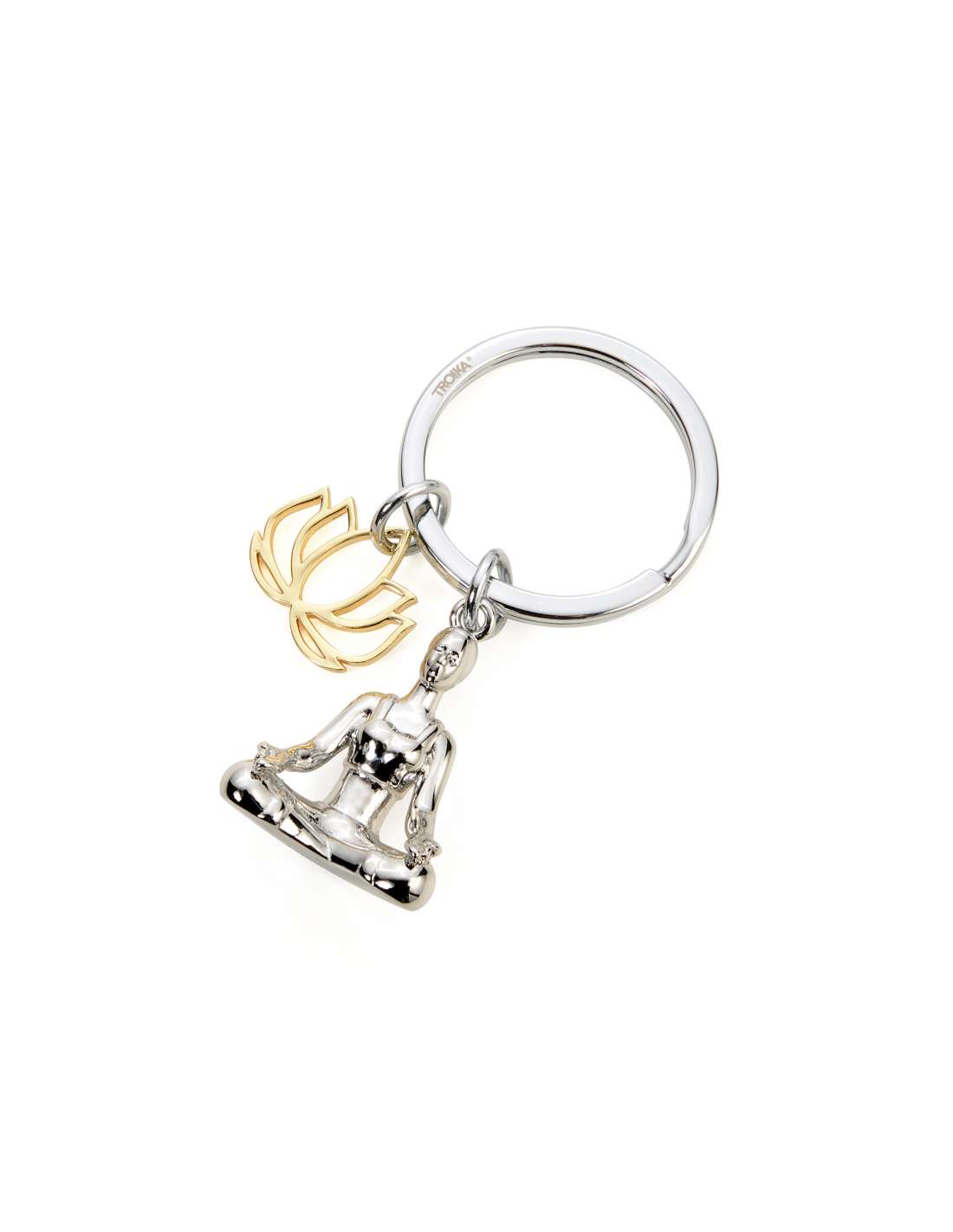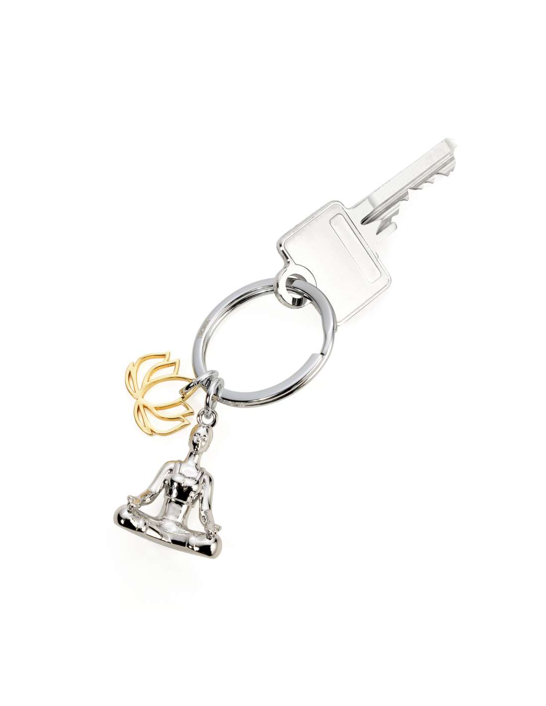 TROIKA YOGA Porte-clés 2 breloques Yogi et fleur de lotus, argenté/doré